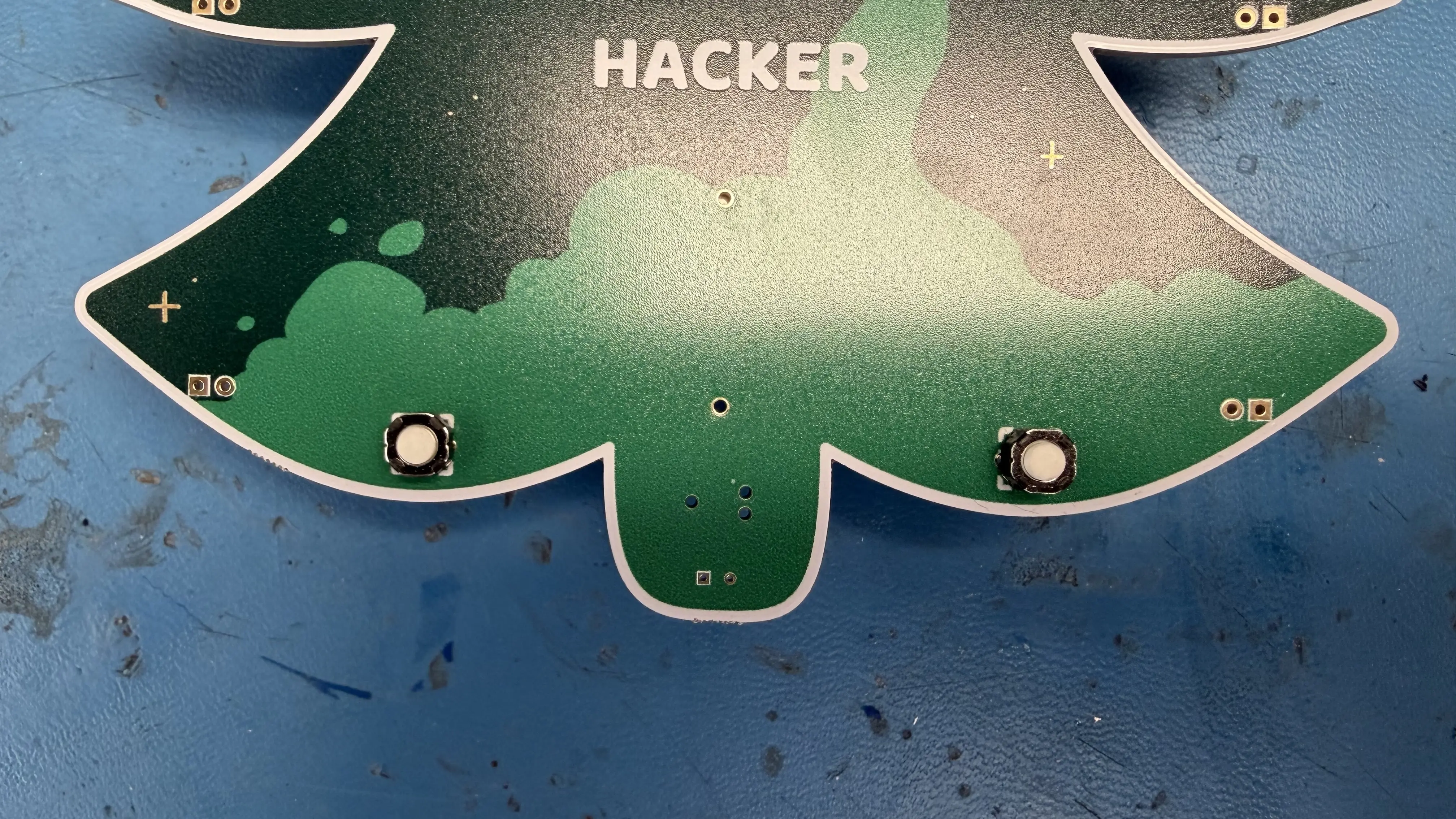 You are finished! But continue reading. Put a battery in the holder and try holding down the buttons to activate your badge. You should see a default LED sequence and hear a default buzzer sequence. If you do not or something seems wrong, let an organizer at the hardware lab know and we can help you!