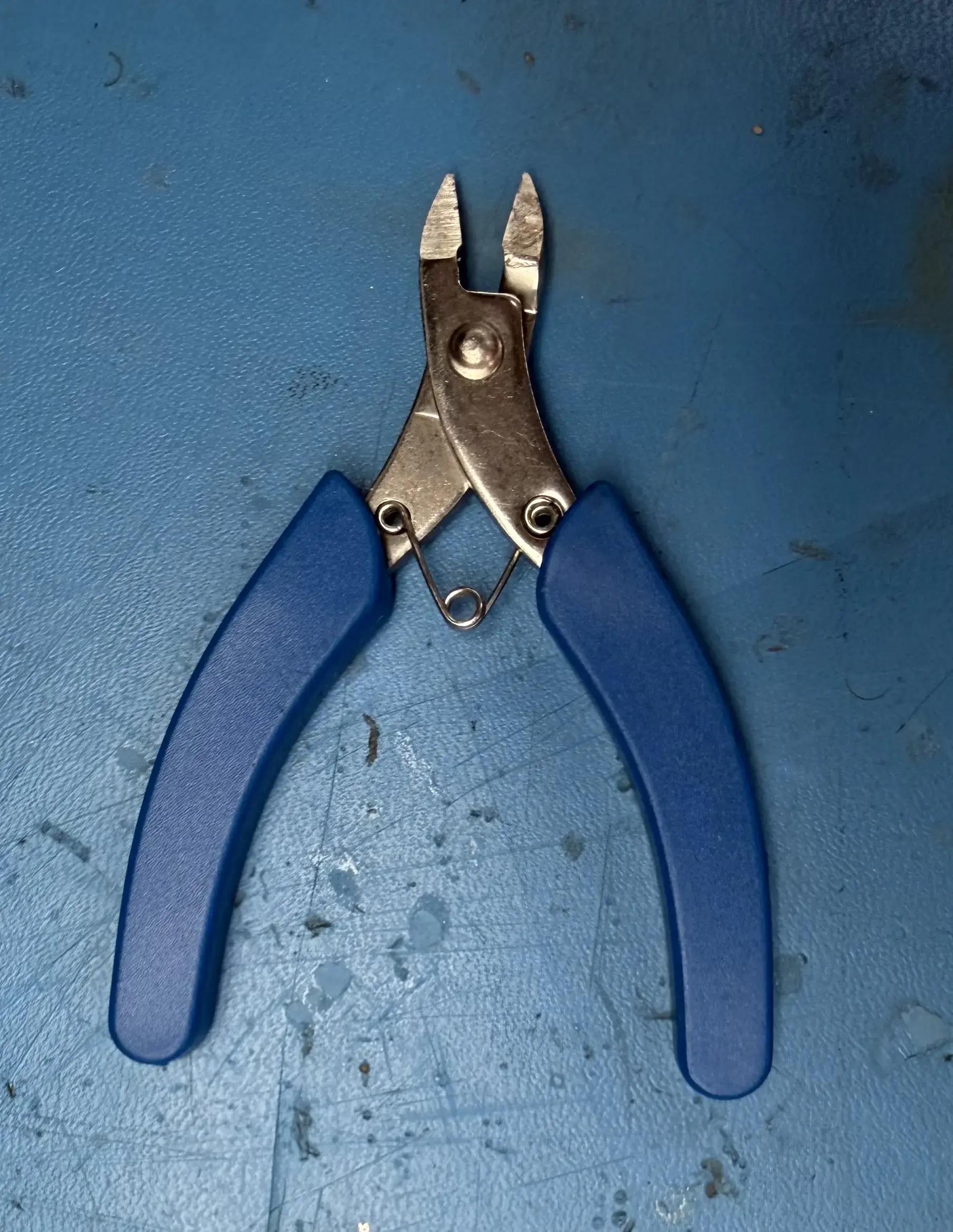 When you get to components that have leads sticking out, use snips (pictured below) to cut the leads off after you have soldered.